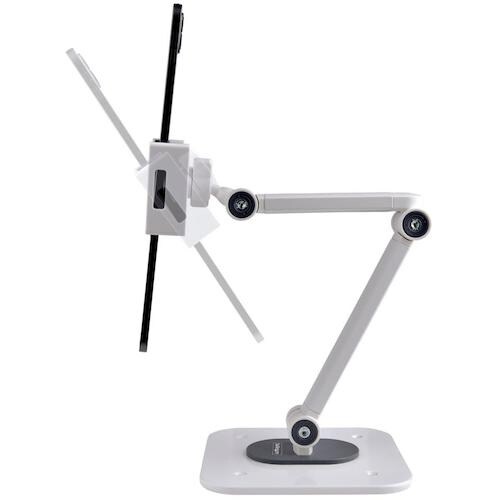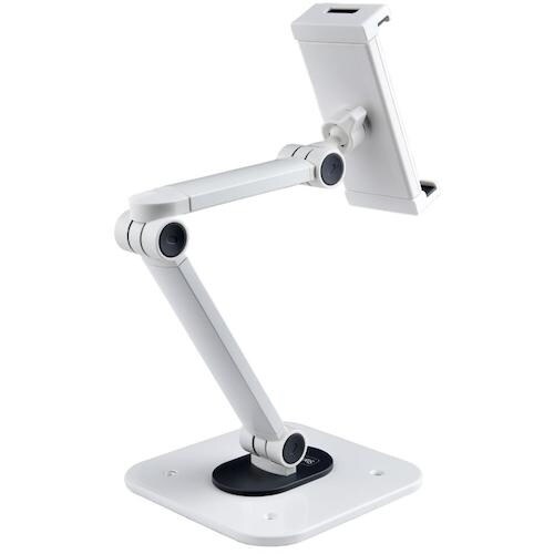 幅12.7ー22.7cm、厚さ1.0cmまでのタブレット各種に対応します。POSや顧客対応・案内などの用途に最適です。可動域の広い3点ピボットアームです。 |