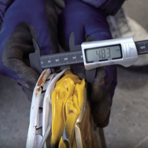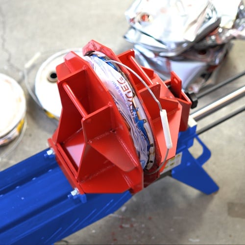 5.5tの力で、スチール缶も簡単に潰せます。缶を潰すことでスペース、処理費を削減し、12秒で高さ36cmの缶が約5cmになります。AC100v電源、移動がしやすいタイヤ付で場所を選ばず作業ができます。 |