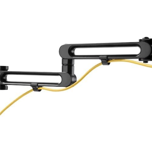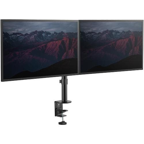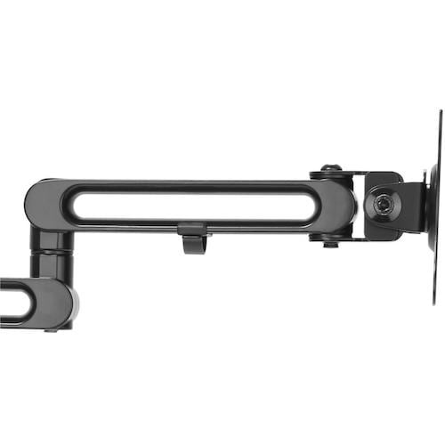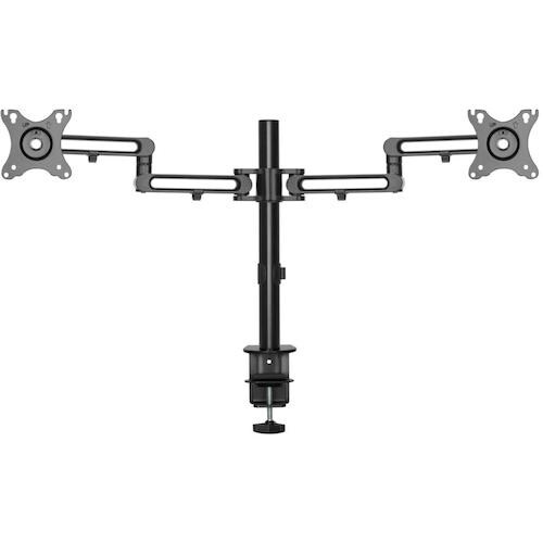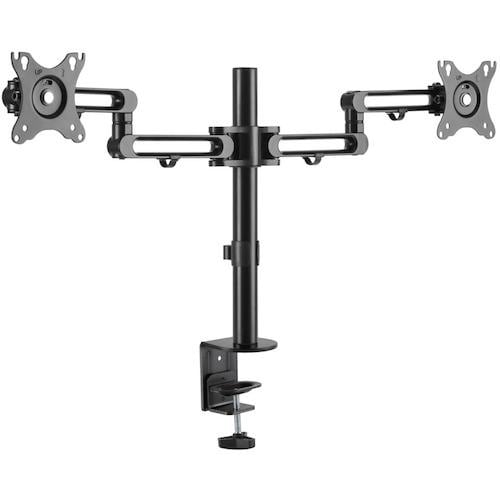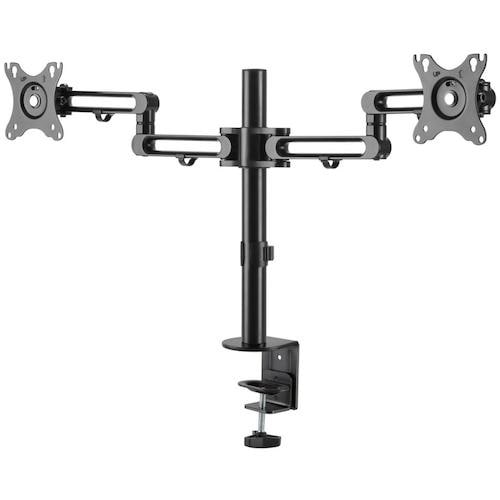 C型クランプを使用するモニターマウントです。デュアルスイベルアームで幅広い可動域を提供します。最大32インチのモニターに対応しています。 |