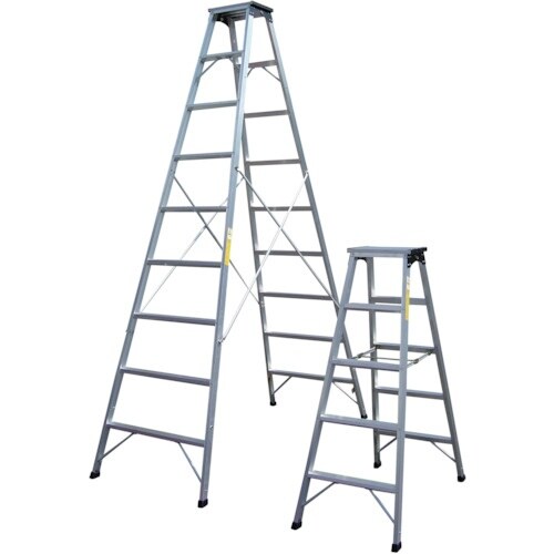 天場が広く各段すべて巾広ステップ材を使用していますので、作業性および安定性が抜群にすぐれている専用脚立です。各段すべて巾広ステップです。高所作業全般に。