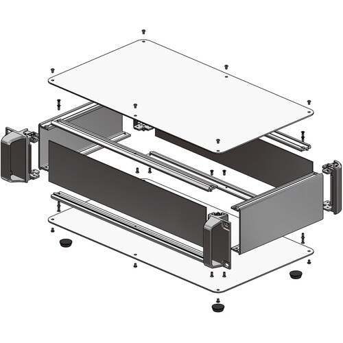 19インチラックにマウント出来る取手付ラックケースです。パネルが差込式でスッキリした外観です。デスクトップ型としてもご使用出来ます。 |