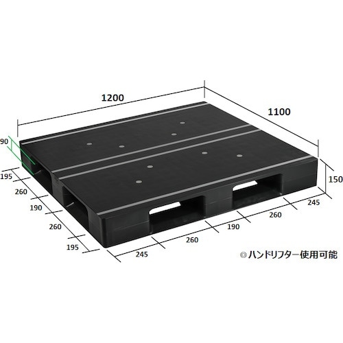 NPC プラスチックパレットAZFD−1211FE−RR 片面四方差し 黒 AZFD1211FERR 1枚