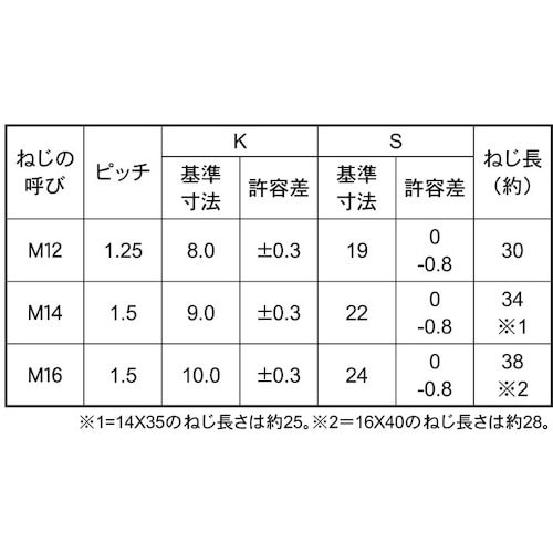 寸法(mm)d:M16 | 寸法(mm)L:40 | ねじピッチ(mm):1.5 | タイプ(全ねじ・半ねじ):半ねじ | 材質・仕上げ:鉄(または標…