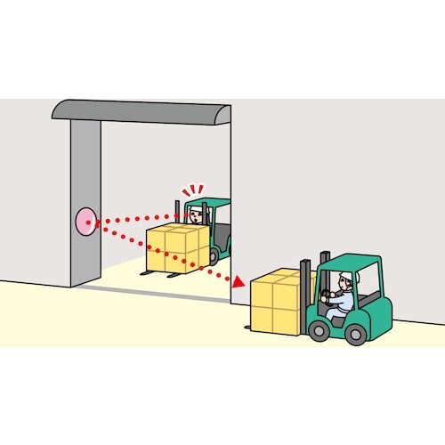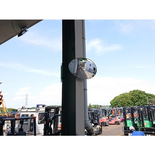 フォークリフトオペレーターの目の高さに設置できるので、非常に見やすいです。ワイドな視野が得られます。動きながらの安全確認がスムーズにできます。フォークリフトの安全確認と作業効率アップに。 |
