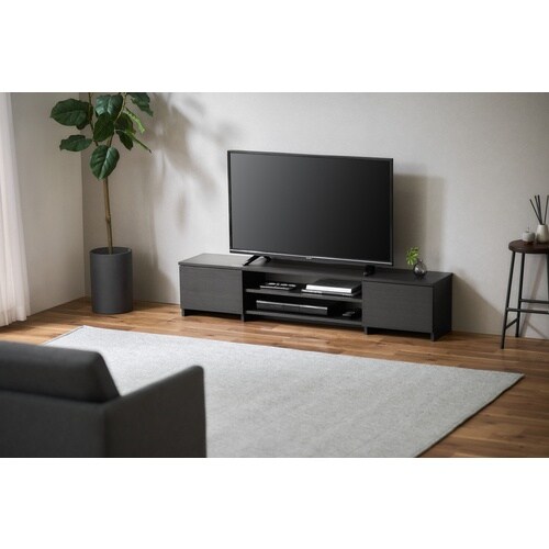 収納力抜群なボックスタイプのAVボードです。中央部はオープンスペースで、魅せる収納にぴったりです。棚板付きでAV機器や小物が置けます。 |