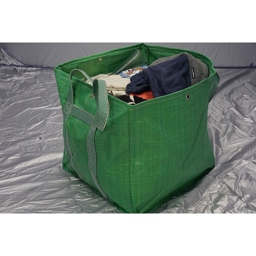 自立式のスタンドバッグで、折りたたんでコンパクトに収納可能です。テント内以外にもゴミ箱、支援物資入れ、衣類入れ、がれき入れなど様々な場面で使えます。 |