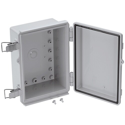 防水保護等級はIP65の開閉式プラスチックボックスです。強度・耐熱温度・難燃性に優れたポリカーボネート樹脂製です。