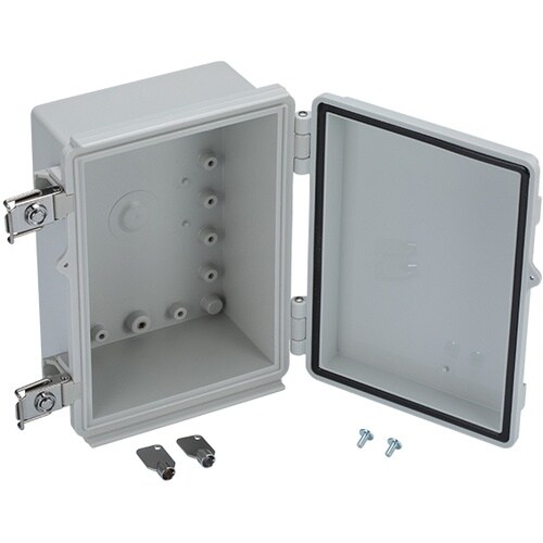 保護等級IP65の防水・防塵鍵付プラボックスです。FA・制御/電設工事用など様々な分野で使用可能な汎用プラボックスです。耐熱性・難燃性に優れたポリカーボネート製です。