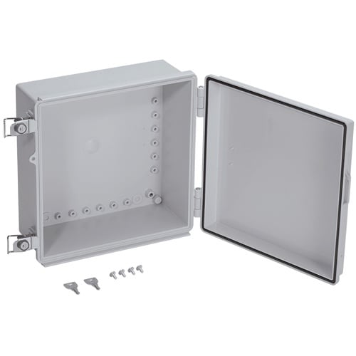 保護等級IP65の防水・防塵鍵付プラボックスです。FA・制御/電設工事用など様々な分野で使用可能な汎用プラボックスです。耐熱性・難燃性に優れたポリカーボネート製です。