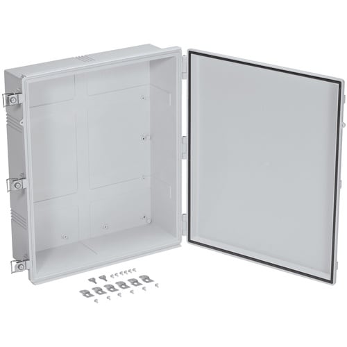 FA・制御/電設工事、通信機器など様々な分野で使用可能な鍵付プラボックスです。トップカバーはライトグレーと透明の2タイプが選択可能で、耐熱性・難燃性に優れたポリカーボネート製です。 |
