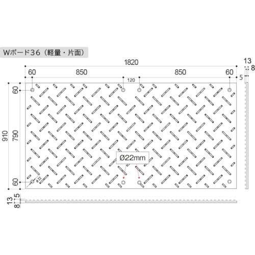 ウッドプラスチック 工事用敷板 軽量Wボード 片面凸 カラー:灰 910mm×1820mm BP091813GY 1枚