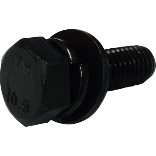 SCM製の六角ボルトに硬さ40ー50HRCのばね座金、及びS55Cの丸座金を組み込んでいます。組込忘れや手間の防止と、従来の鉄製では強度不足な個所への使用に適しています。 |