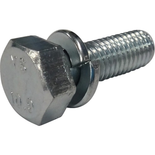 SCM製の六角ボルトに硬さ40ー50HRCのばね座金、及びS55Cの丸座金を組み込んでいます。組込忘れや手間の防止と、従来の鉄製では強度不足な個所への使用に適しています。 |