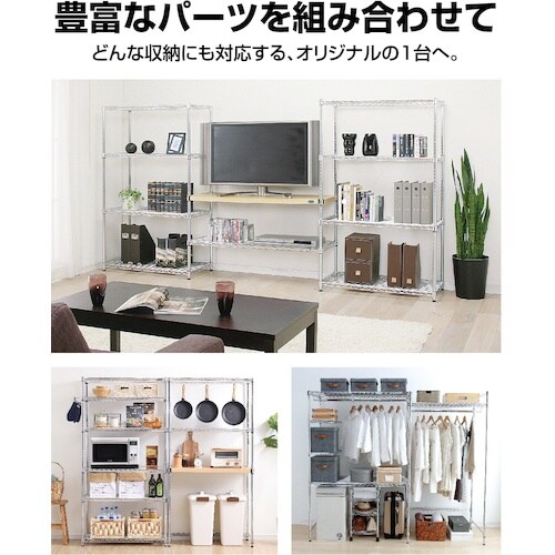 間口(mm):445 | 奥行(mm):325 | パイプ径(mm):19 | 均等積載量(kg・段):15 | 最大積載量(kg・台):60(静止時…