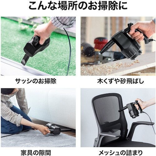 ■強力にゴミやほこりを吹き飛ばす、電動エアダスターです。■ガスを使用しないので、安全安心に使用できます。■AC電源接続でバッテリーを気にせず使用できます。 |