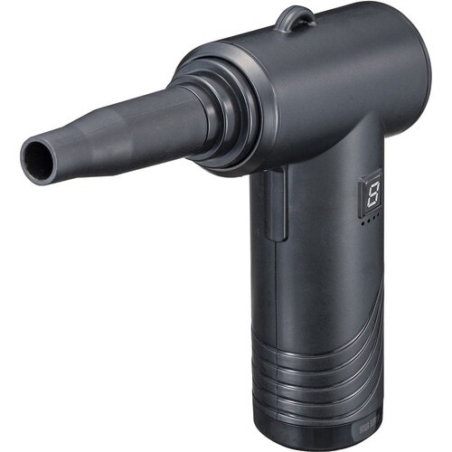 繰り返し使える充電式電動エアダスターです。本体はどの向きでも使用可能で、逆さにも対応しています。手のひらサイズのコンパクトタイプで、持ち運びや収納に便利です。 |