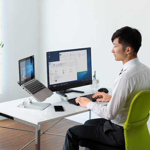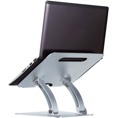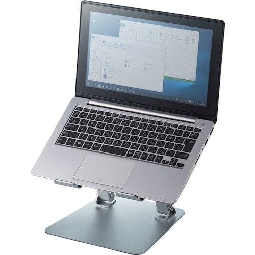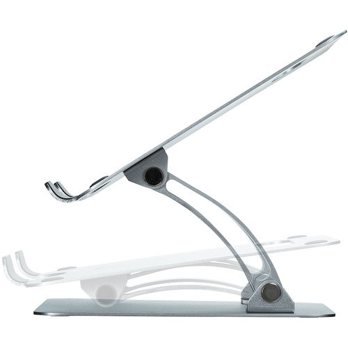 フリーで高さ・角度調整ができる、ノートパソコンスタンドです。タブレット機器の設置も可能です。POSレジに使用できるタブレットも設置できます。 |