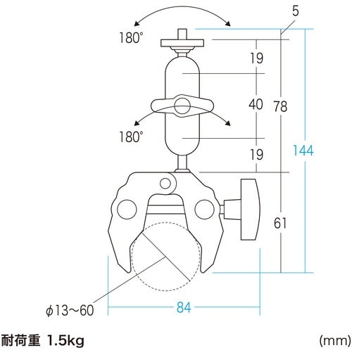 ■柱など、様々な場所にクランプ取り付けできるカメラマウントです。■13ー60mmの支柱に取り付け可能です。■アルミ素材なので、軽量でコンパクトながらも頑丈です。 |