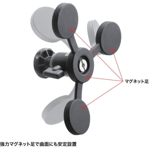 ■底面に4つの強力マグネットを備えたカメラマウントです。■3か所のベースで平面にも曲面にもピタッと設置可能です。■ボールジョイントが360度回転し自由に角度調節できます。 |