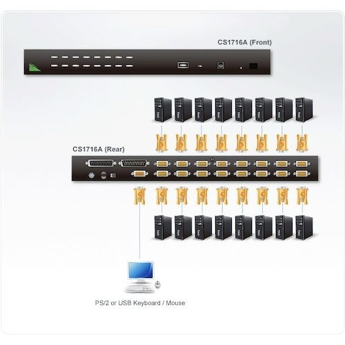 複数台のコンピューターを、一か所のコンソール(ディスプレイ、マウス、キーボード)から切り替えて操作が可能です。PCとサーバーの集約、切替に。 |