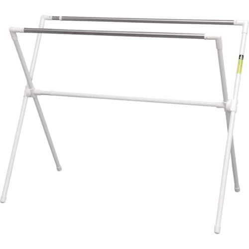 ネジ・釘を使わないで女性でも簡単に組み立てることができます。ふとんの枚数に合わせて伸縮できるふとん干しです。ふとんをかける場所は、丈夫でさびにくいステンレス巻きパイプを使用しています。 |
