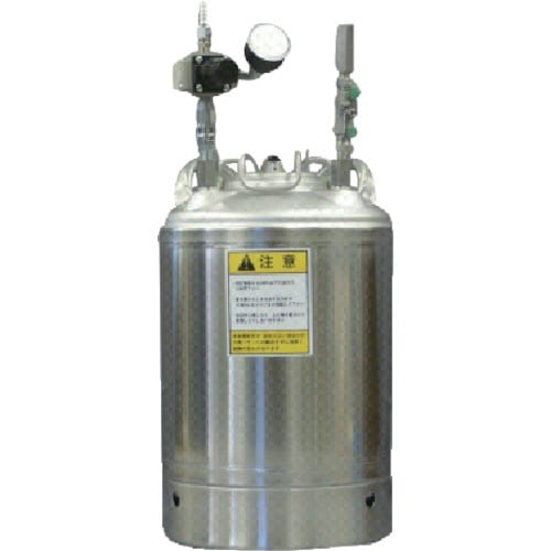 液体の圧送に最適な軽量、コンパクトなステンレス製の加圧容器です。減圧弁、リリーフバルブ、液用フィルターが標準装備しています。蓋の開閉が簡単なワンタッチレバー式です。液体をエアーで圧送するタンク。 |