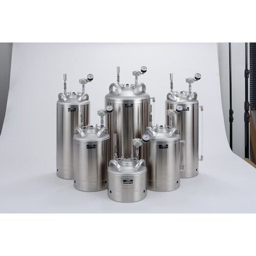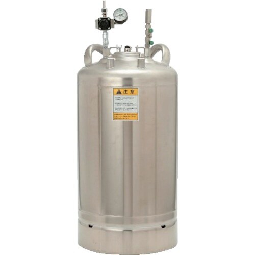 液体をエアで圧送するタンクです。液体の圧送に最適な軽量、コンパクトなステンレス製の加圧容器です。減圧弁、リリーフバルブ、液用フィルターを標準装備しています。フタの開閉が簡単なワンタッチレバー式です。 |