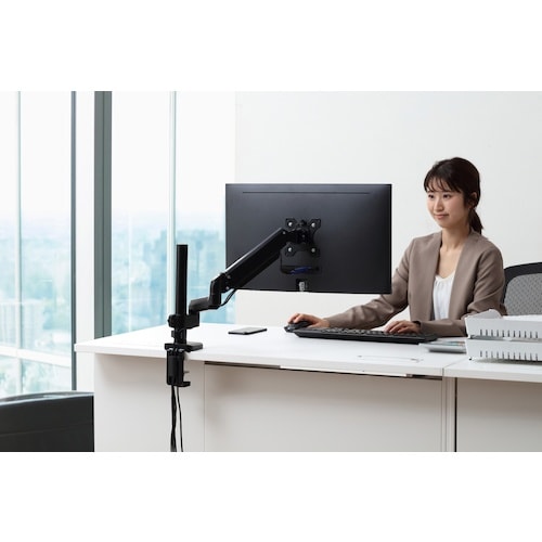 デスクに取り付けて自由な角度や向きに調整できる、ディスプレイアームです。VESA規格に対応しているので、様々なサイズのディスプレイに取り付けできます。デスクでのディスプレイの使用に。 |