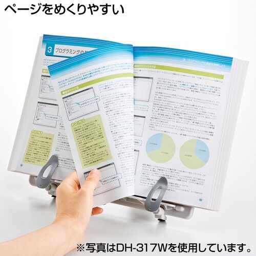 手軽に本をホールド、クリップ付きでデータホルダーとしても使用可能です。3段階での角度調整が可能です。厚さ40mmまでの本を挟むことが出来ます。 |