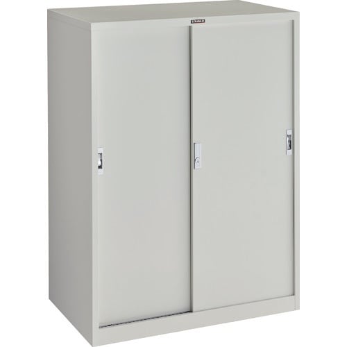 引戸付で施錠できます。棚板は30mmピッチで自由に変えることができます。 |