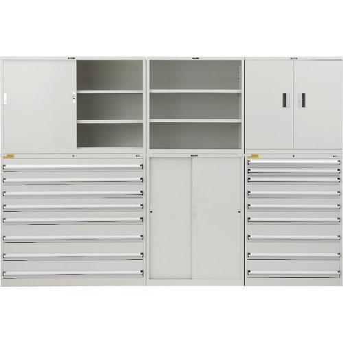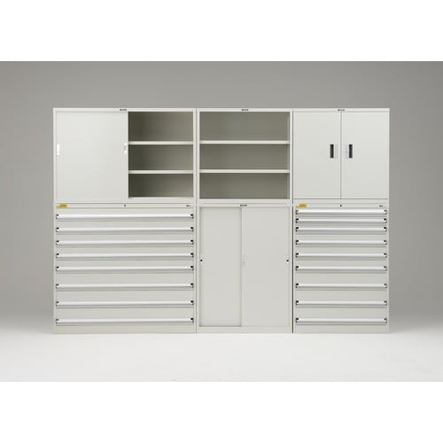 扉付で施錠できます。棚板は30mmピッチで自由に変えることができます。 |