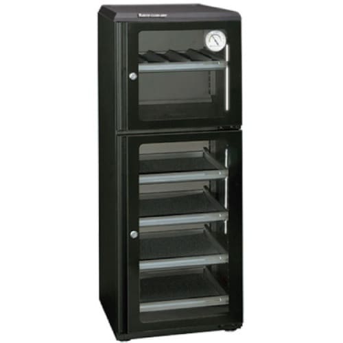 独自開発した光触媒機構の電子ドライユニット(日本製)を搭載しているため耐久性抜群です。除湿しながら庫内をクリーンに保ちます。乾燥剤の交換が不要でメンテナンスフリーです。 |