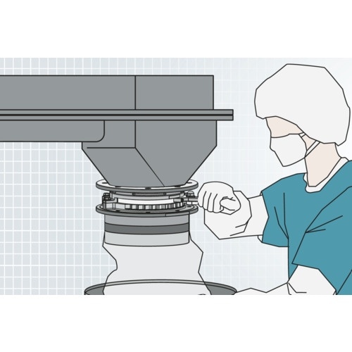 シンプルな操作性スリーブ弁の外側に張られたロープをハンドル操作で絞る、または緩めることでスリーブ弁の開口幅を調整し、排出流量を調整することが可能です。 |