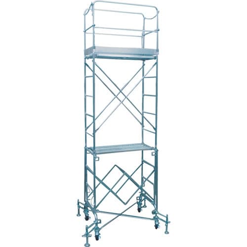 簡単に折りたたみができ収納時に便利です。Wストッパーφ130mmキャスター仕様です。足場板、連結板の組み合わせで広さ自由自在です。4段階で高さ調整できます。
