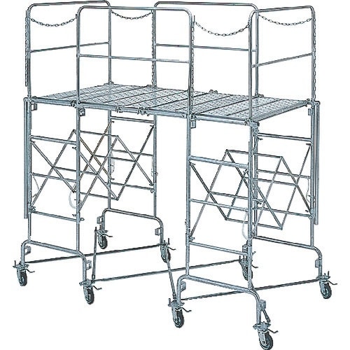簡単に折りたたみができ収納時に便利です。Wストッパーφ130mmキャスター仕様です。足場板、連結板の組み合わせで広さ自由自在です。4段階で高さ調整できます。