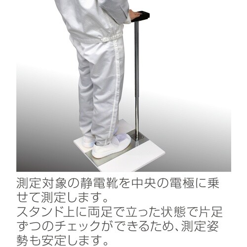 コードレスで設置場所を選びません。RCJS−5−1、JIS T 8103に準拠した静電気対策用履物の抵抗値を合否判定します。測定値を読み取らずに合否判定が可能なため、手軽に日常点検が実施できます。 |