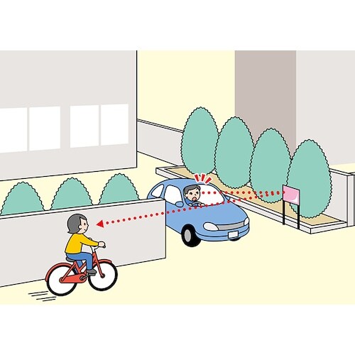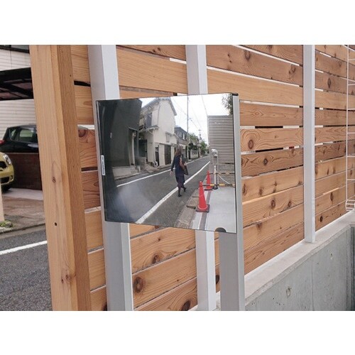 道路の死角から来る人や自転車などの安全確認ができます。シンプルなデザインで景観になじみます。駐車場、道路などの安全確認に。