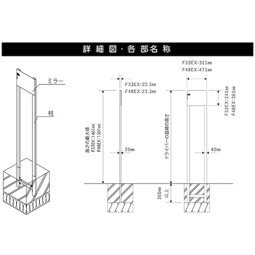 その他仕様:屋外可 自立埋込タイプ | セット付属内容:柱、組立金具一式 | 単位:1個