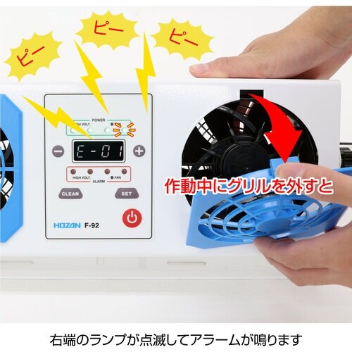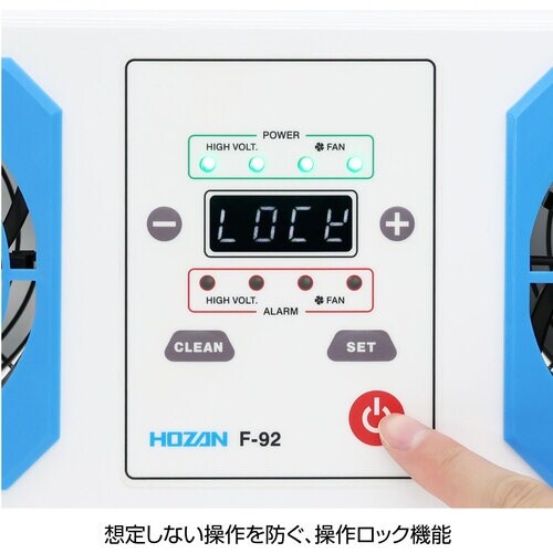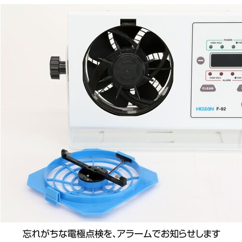 除電エリアが広いツインファンタイプのイオナイザー作動タイミングを任意に設定できる「自動電極クリーニング機能」をはじめ、性能管理を補助する各種機能を備え、常に安定した除電エリアを保ちます。 |