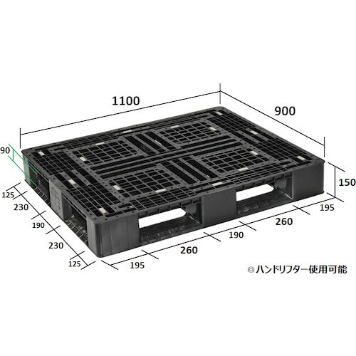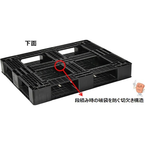 NPC プラスチックパレットFA−1109RR 片面四方差し 黒 FA1109RR 1枚
