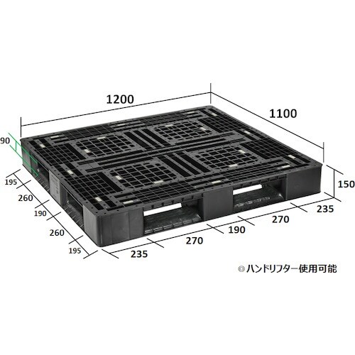 日本プラパレット NPC プラスチックパレットFA−1211RR 片面四方差し 黒 FA1211RR 1枚 A04N-7333