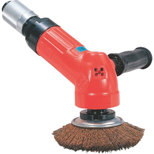 エアーの流れを見直したことによりパワフルな回転を実現しました。アングル角度120°で90°の標準タイプ型では困難な天井や壁面などの研削作業に最適です。金属などの研削・研磨に。 |