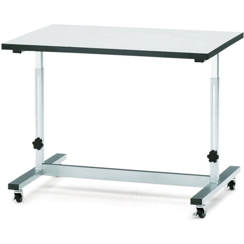 作業の目的・用途によって高さ700ー1000mmまで調節機能が付いています。ストッパー付キャスターを装着してありますので作業場でも楽々移動できます。支柱パイプには、天板高さの表示があります。 |