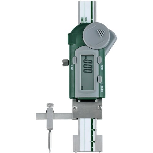 薄型ベースの2点支持(球面)タイプです。デジタルタイプのため、任意点でゼロセットをすることができます。段差を一発測定、可動測定子で凸部を逃げて測定できます。 |