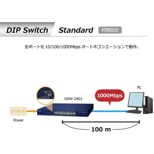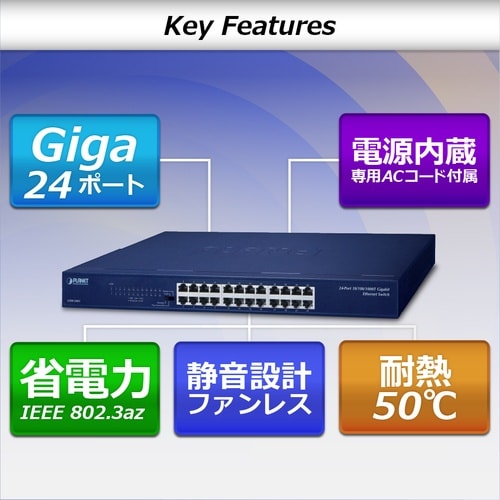 1000BASE−T 24ポートを持つギガビットイーサネットスイッチングハブ。 |