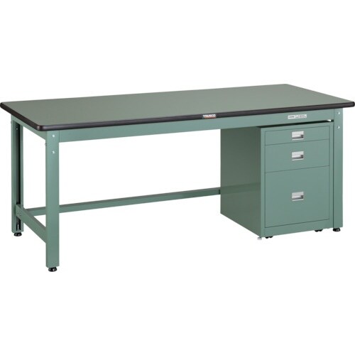 TRUSCO 中荷重作業台(800kg)GW型 1800X900XH740 3段キャビネット付 グリーン色 GWR1890UDC111 1台