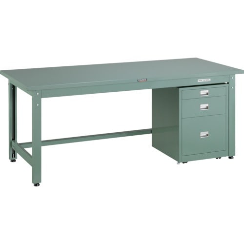 TRUSCO 中荷重作業台(800kg)GW型 1800X900XH740 3段キャビネット付 グリーン色 GWS1890UDC111 1台