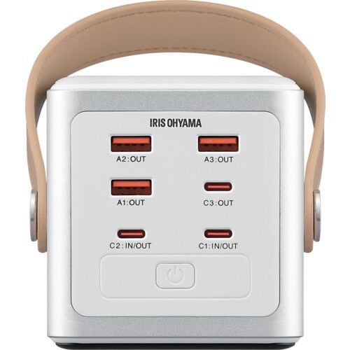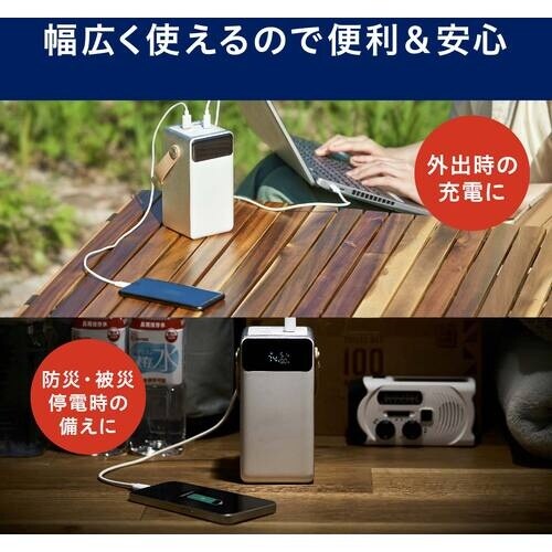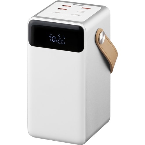 持ち運びにも便利なハンドル付きで、60000mAhの大容量バッテリーです。ライトのみの使用で約144時間点灯可能な、3段階調光のLEDライトを背面に搭載。電子機器の給電に。 |