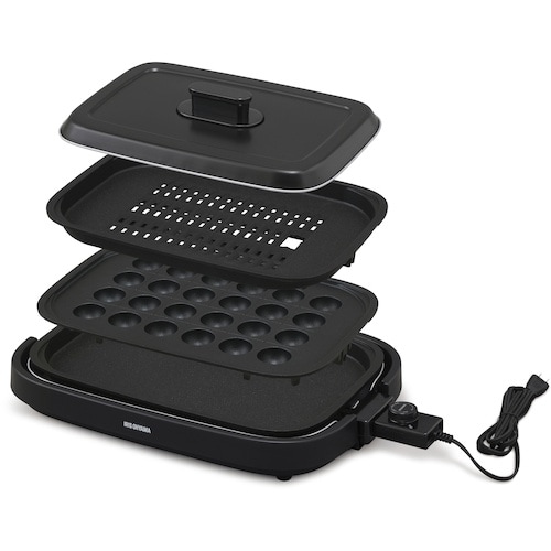 煙やニオイを気にせず、焼肉を楽しめます。焼肉プレート(穴あき)は、余分な脂が水受皿に落ちることで、煙を少なく調理できます。卓上加熱調理に。 |