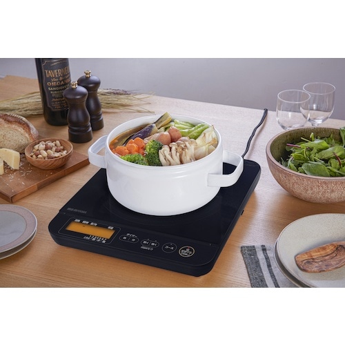 見やすい大きな液晶付きのIHコンロです。「鍋モード」搭載で鍋沸騰後は自動で火力を落とし、その後はお好みに応じて火力調整が可能です。分かりやすく次の操作をLEDでお知らせ、初めてでも簡単操作できます。 |